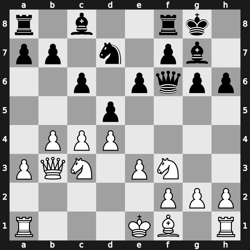 Amber-blind 6th 1997 – Round 10 – Kramnik, Vladimir – 1/2-1/2 – Andersson, Ulf 1949 – G43